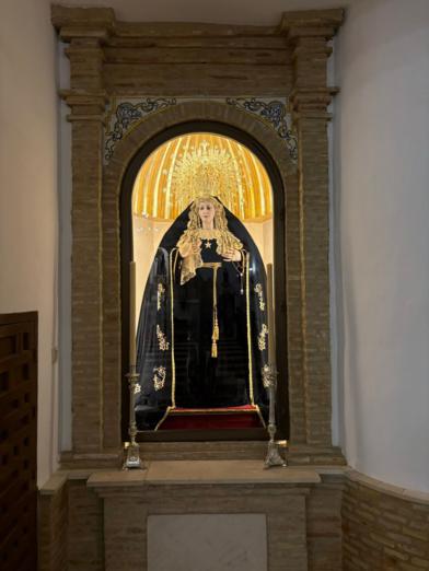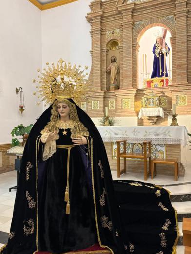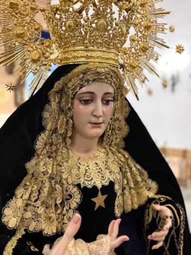 Nuestra Titular viste manto y saya con el tradicional color negro, propio de estas fechas.