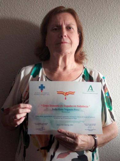 - Como Grandes Donantes de España en Andalucía, (65 Donaciones Mujeres o 75 Donaciones Hombres; algo así como Grandes de España en materia de donaciones, titulo "nobiliario" que se otorga, no por la sangre recibida, sino por la sangre entregada), se reconoce a Dª ROSA NOGUERO PEREZ y a D. JOSE LUIS SORIANO CEREZO.