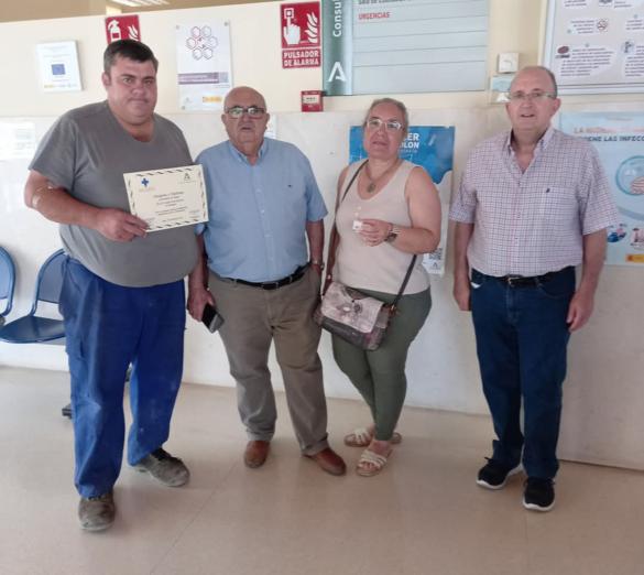 - Diplomas a Donantes para los que han alcanzado las 10 donaciones para Dª. DOLORES BARRAGAN SORIANO, Dª. MANUELA COBA LARA, D. JUAN B. LEÓN NAVARRO, Dª. JUANA RAMIREZ CACHINERO, D. GABRIEL RELAÑO MONTILLA, Dª. JUANA ROCHA GONZALEZ.