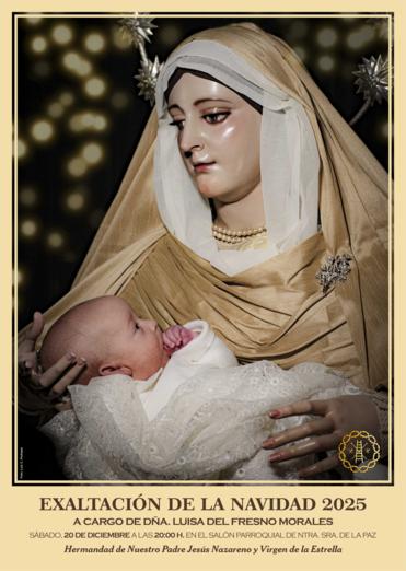 Con motivo de la llegada de la Navidad, la Hermandad de Nuestro Padre Jesús Nazareno y Virgen de la Estrella organiza la Exaltación de la Navidad 2025, que en esta ocasión será a cargo de Dª. Luisa del Fresno Morales.