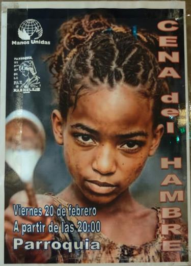 Continuando la tradición de años anteriores, el Grupo Parroquial de manos Unidas de nuestra Parroquia, organiza al llegar la Cuaresma, una Cena de Hambre, cuyos beneficios se destinarán a financiar los proyectos que nuestra Diócesis tiene asignados, y que, ya se hicieron públicos en las Misas de Domingos anteriores.